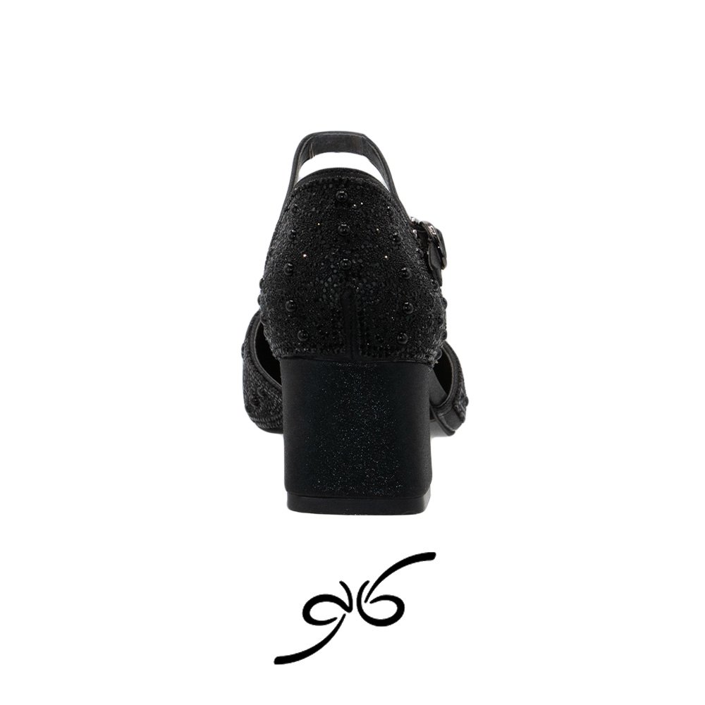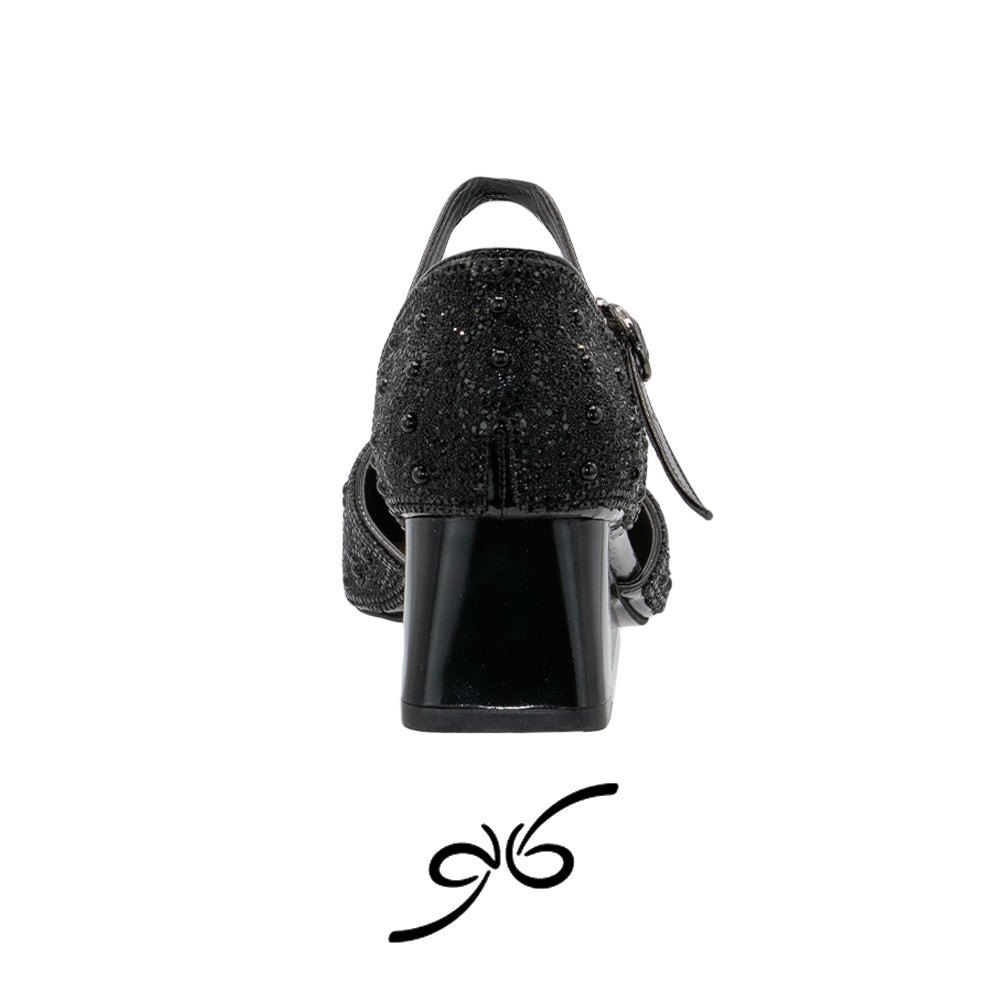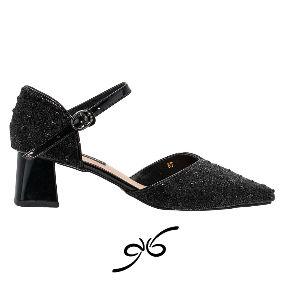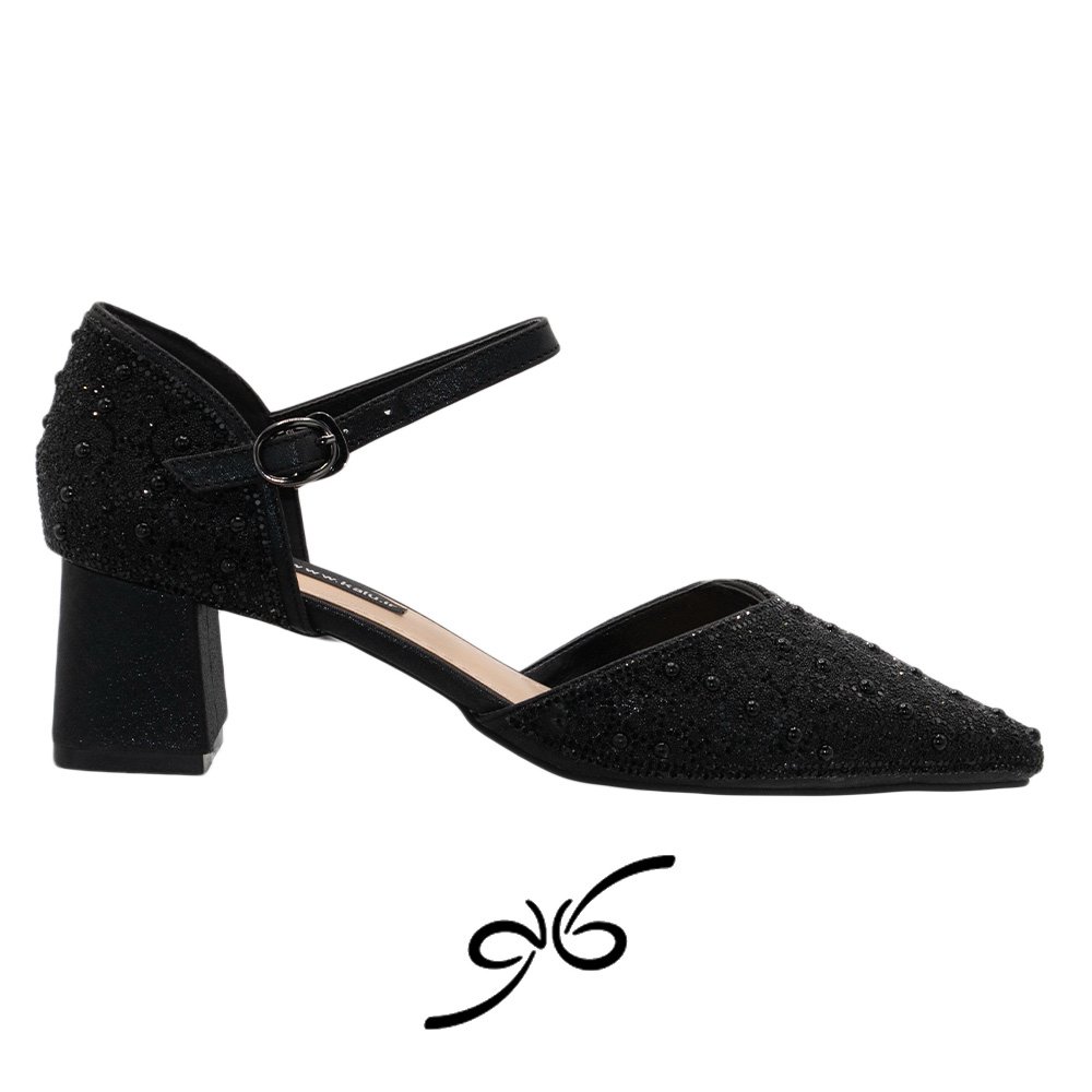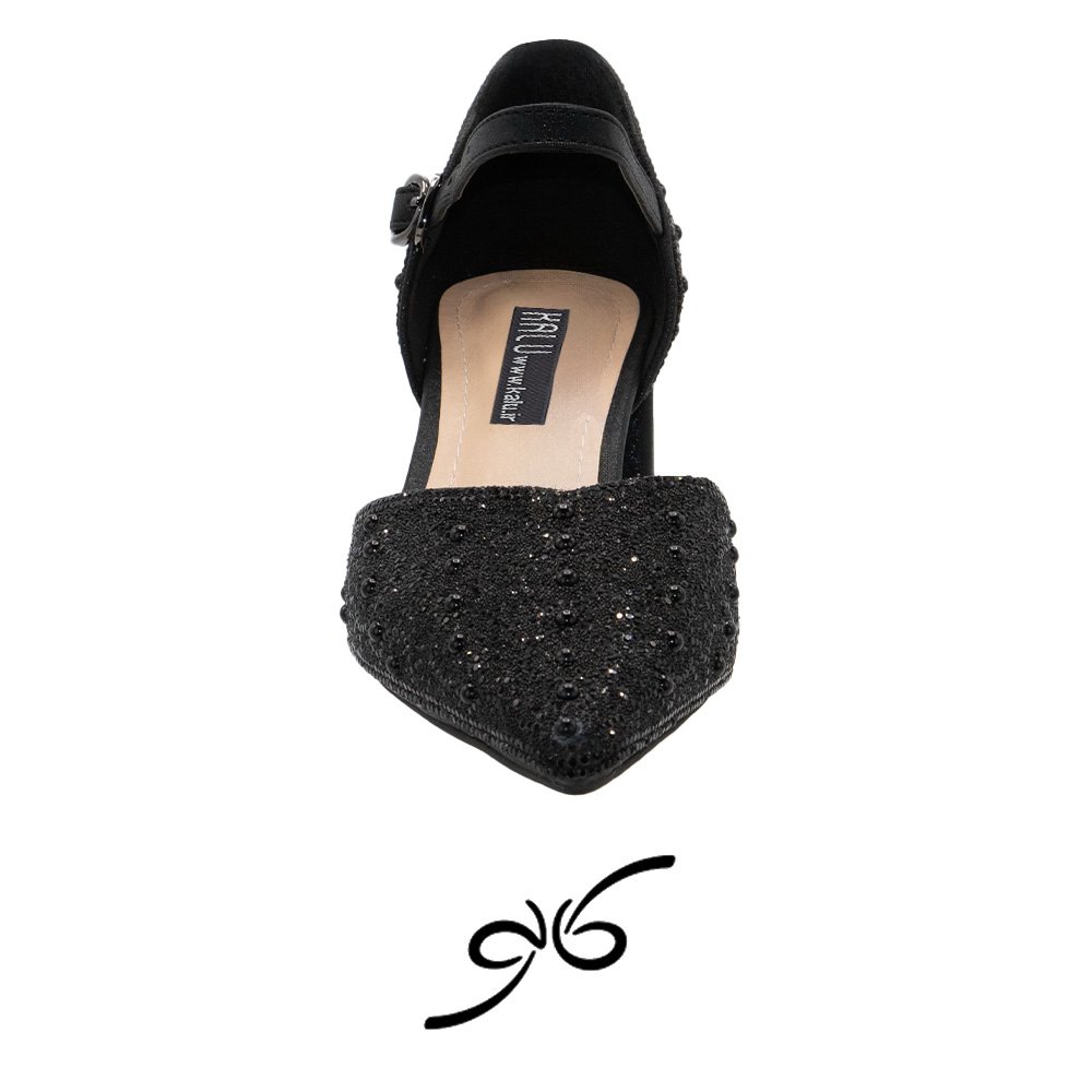 رویه فول نگین کار شده، ظاهری جذاب و پرزرقوبرق به کفش میدهد و آن را به یکی از بهترین گزینهها برای استایلهای مجلسی و رسمی تبدیل میکند. طراحی پشت بسته این مدل نیز حس استحکام و پوشیدگی بیشتری به استایل شما میبخشد.