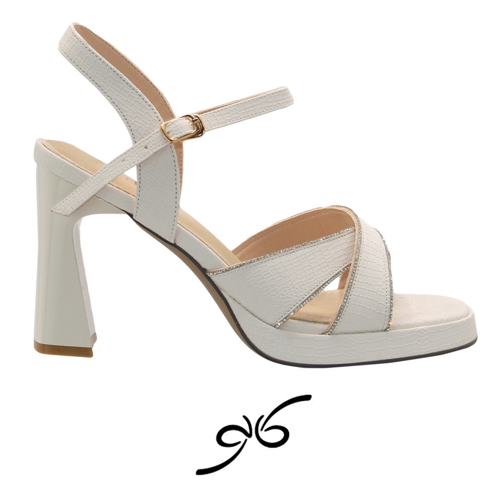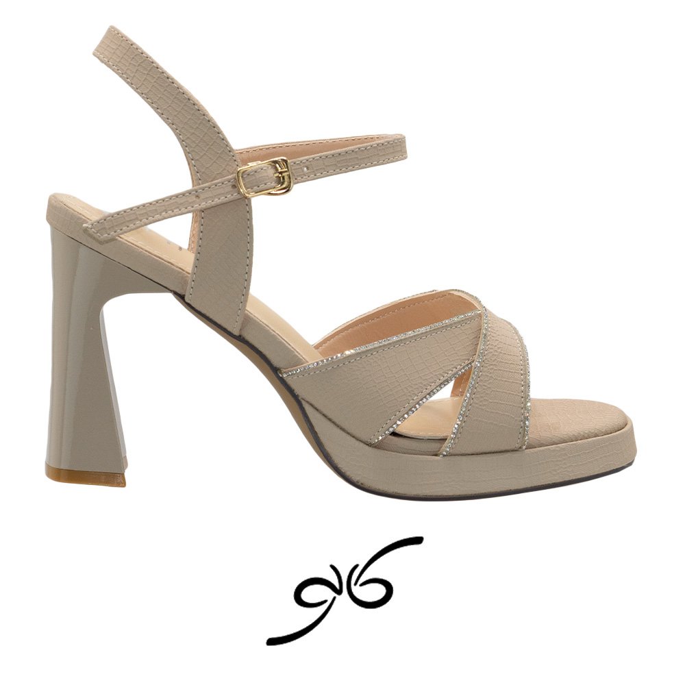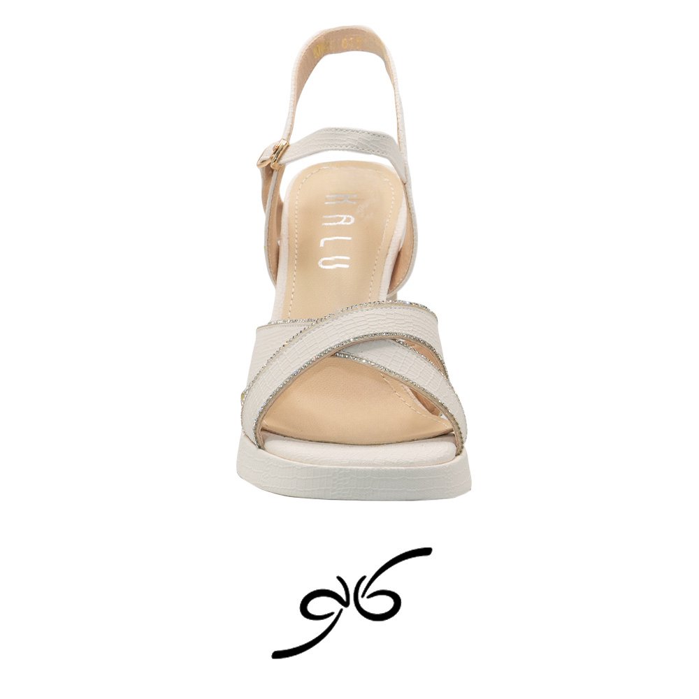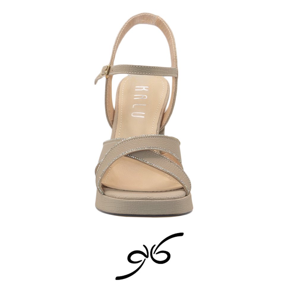 نگینهای کار شده بر روی بندهای جلویی این صندل زنانه، جلوهای خاص و لوکس ایجاد میکنند. این طراحی باعث میشود کفش، انتخابی مناسب برای مجالس، مهمانیها و حتی جشنهای رسمی باشد.