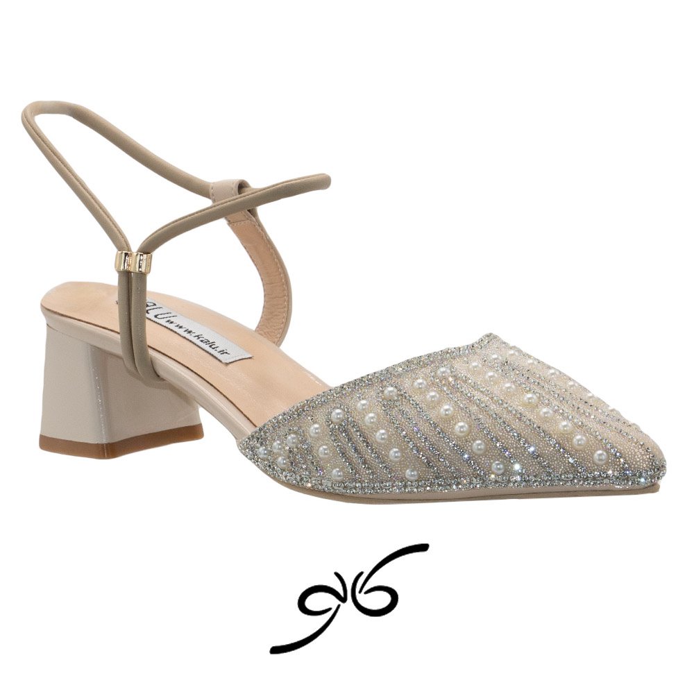 کفش زنانه نگینی مرواریدی پشت باز - A50122