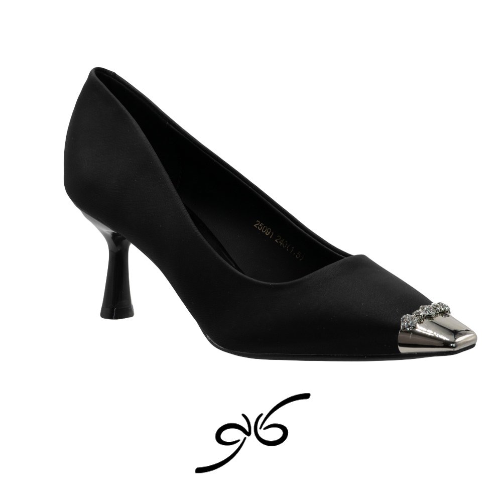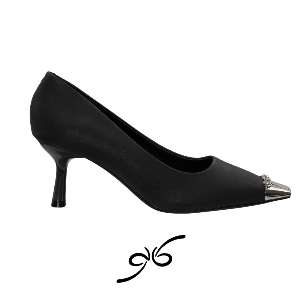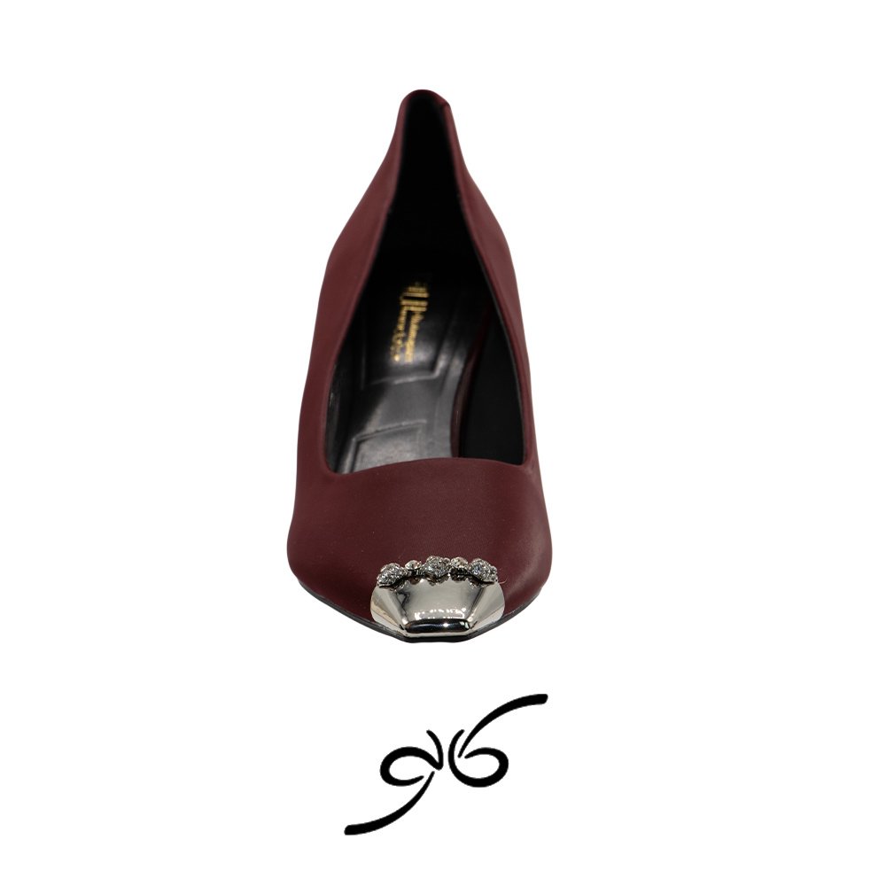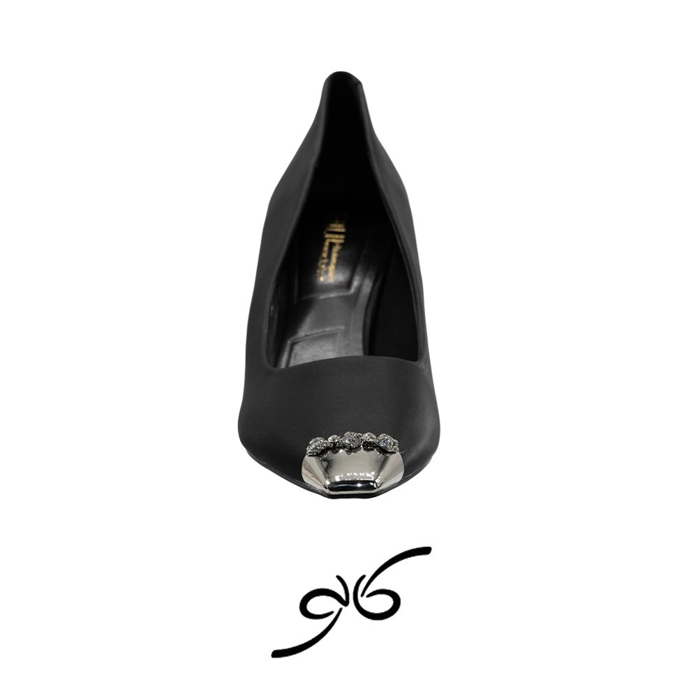 این کفش زنانه مجلسی با نوک تیز فلزی و نگینهای درخشان جلوهای منحصربهفرد و لوکس به استایل شما میبخشد. طراحی زیبا و در عین حال ساده آن، باعث میشود با انواع لباسهای مجلسی و شب بهخوبی ست شود و ظاهری جذاب و متفاوت ایجاد کند.