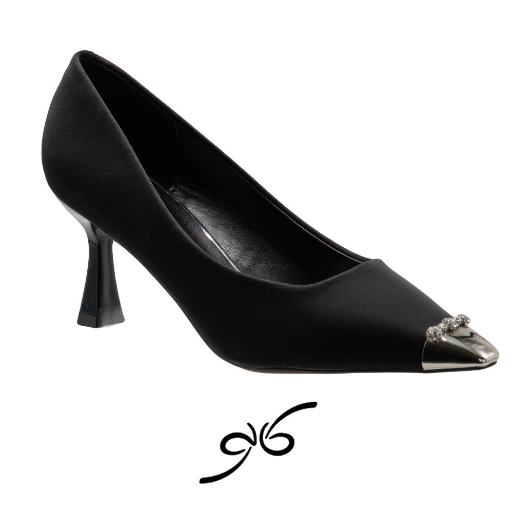 این کفش زنانه مهمانی با ترکیب رویه چرم مصنوعی مرغوب و جزئیات ظریف نگینکاری شده در قسمت جلویی، ظاهری مدرن و شیک دارد. نوک تیز فلزی کفش همراه با نگینهای درخشان، جلوهای چشمگیر ایجاد کرده که استایل شما را در مهمانیها، مجالس رسمی و دورهمیهای خاص برجسته میکند.