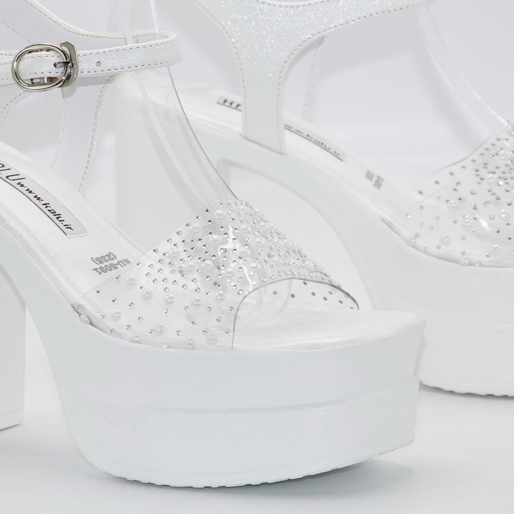 رویه جلوی صندل از طلق شفاف با مرواریدهای درخشان ساخته شده است که جلوهای لوکس و منحصر به فرد ایجاد میکند. این طراحی باعث میشود استایل شما در مهمانیها بدرخشد و به راحتی با لباسهای مجلسی ست شود.