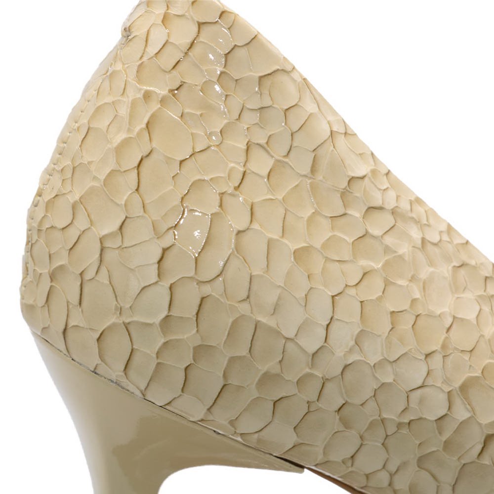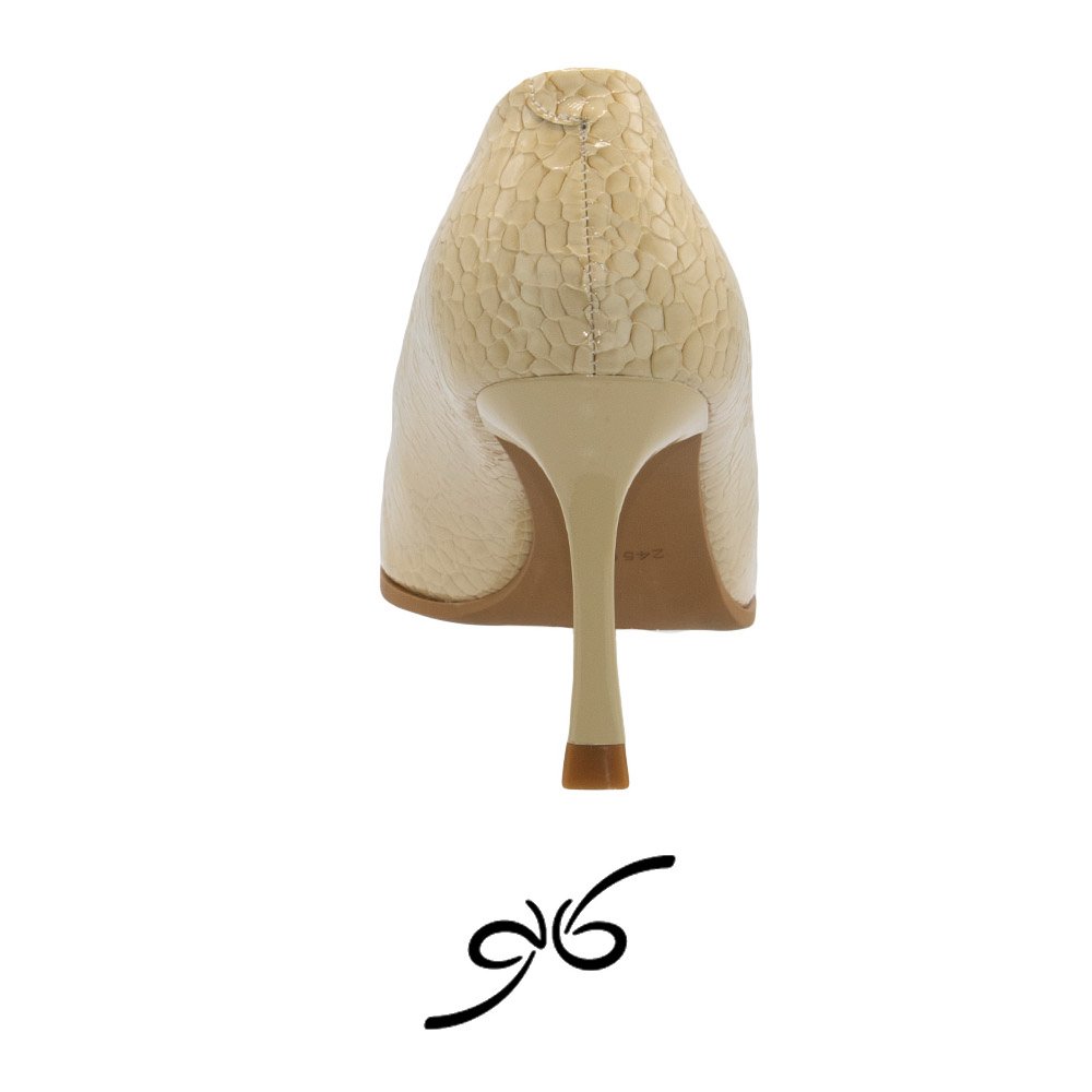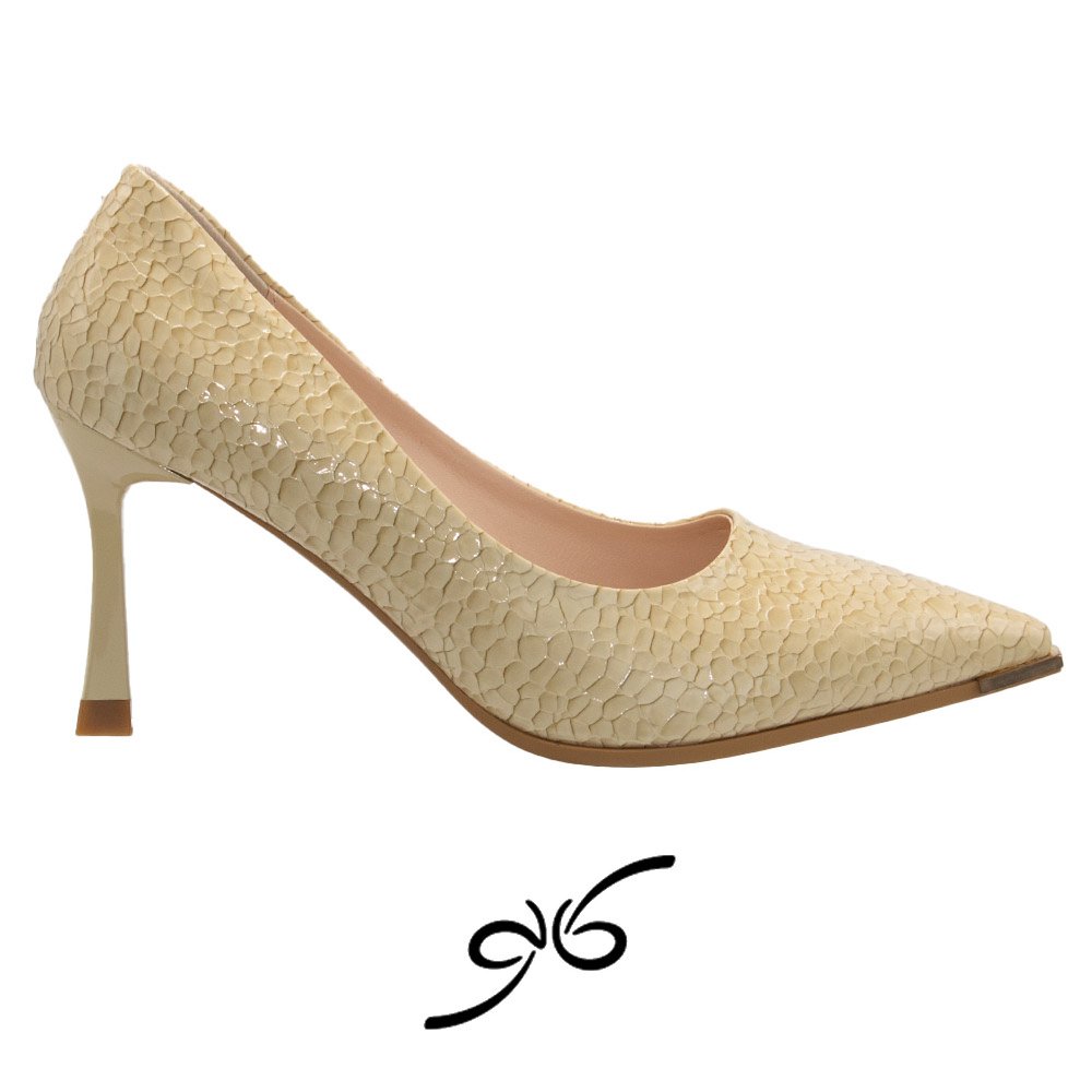 این کفش زنانه با طراحی مینیمال و خطوط ساده، مناسب استایلهای کلاسیک و مدرن میباشد. وجود فلز خاص در داخل زیره کفش جلوهای متفاوت و چشمگیر ایجاد کرده و آن را به گزینهای منحصربهفرد برای خانمهای خاصپسند تبدیل میکند.