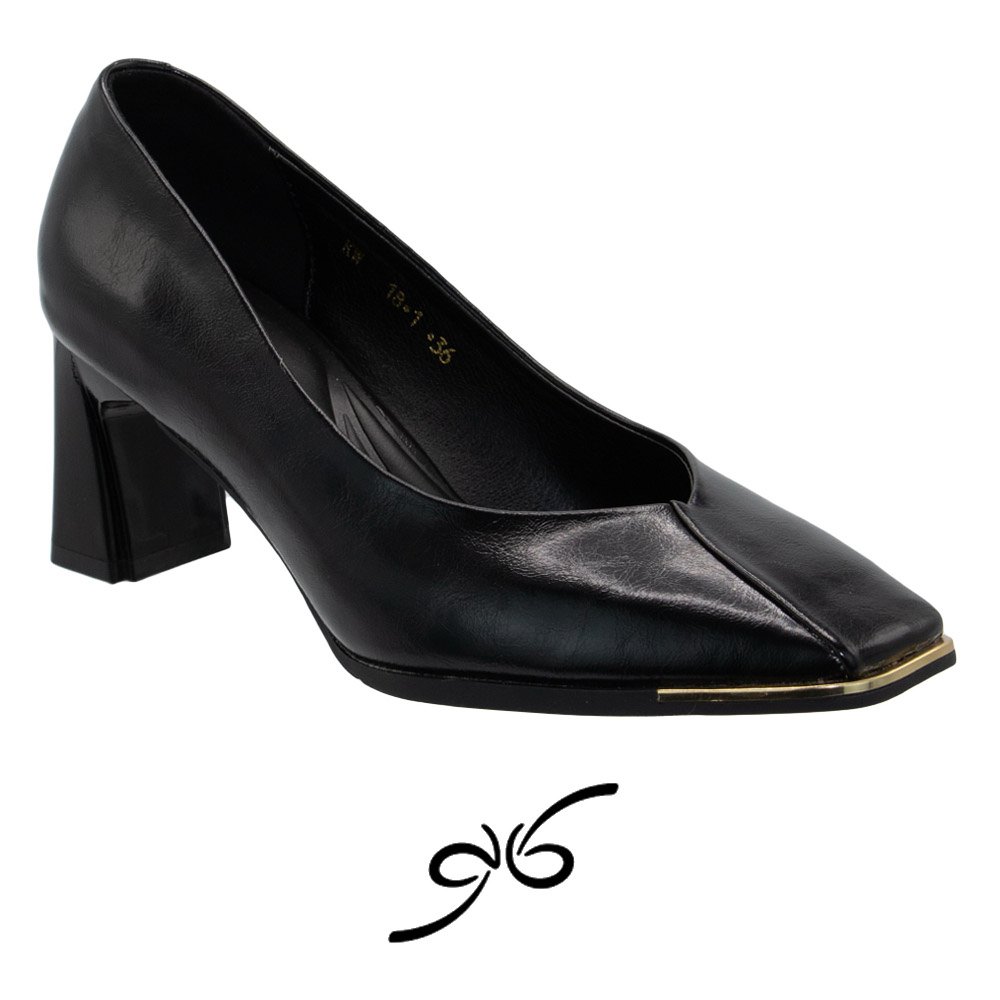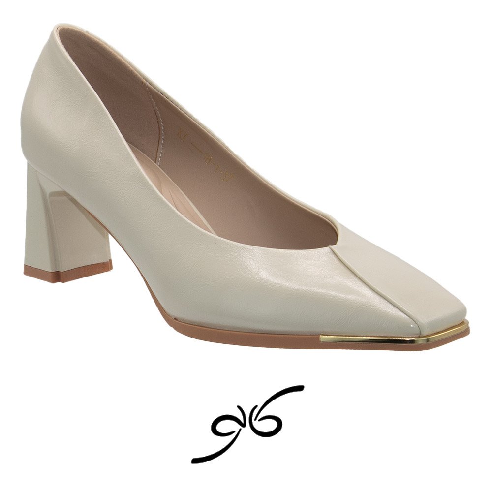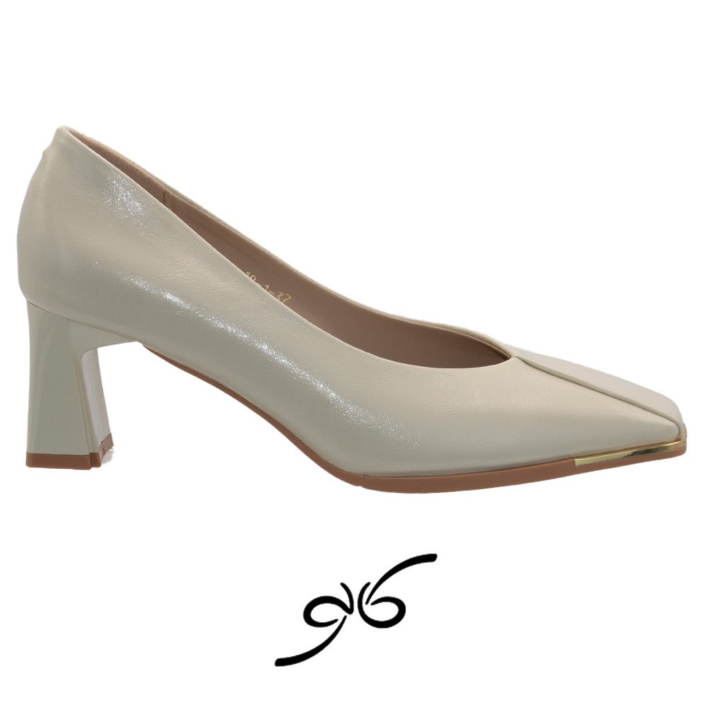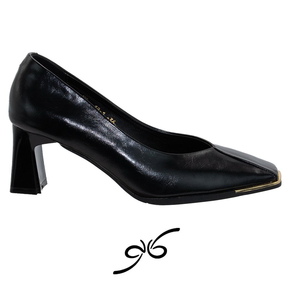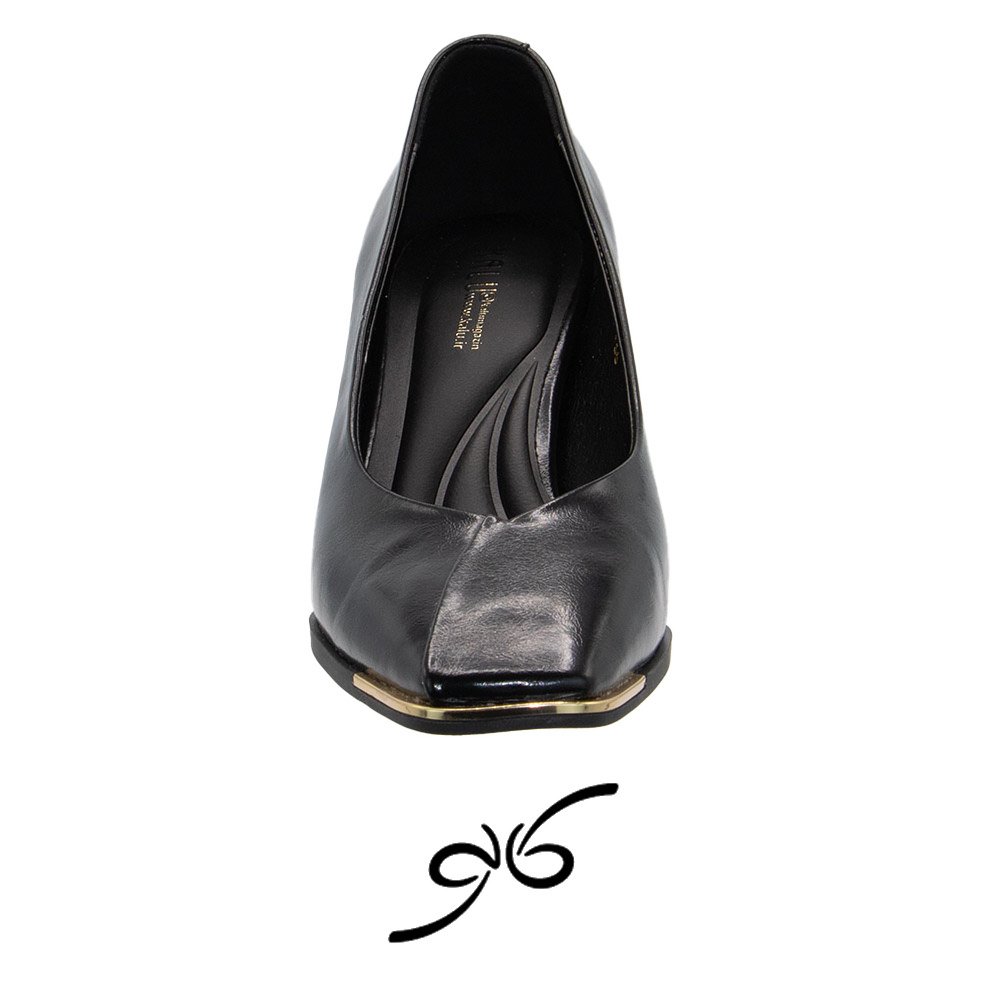 رویه این کفش از چرم ورنی باکیفیت ساخته شده است که علاوه بر زیبایی، جلوهای براق و خاص به محصول میبخشد. یکی از ویژگیهای برجسته این مدل، وجود فلز طلایی در قسمت جلوی زیره است که طراحی را مدرنتر و لوکستر جلوه میدهد.